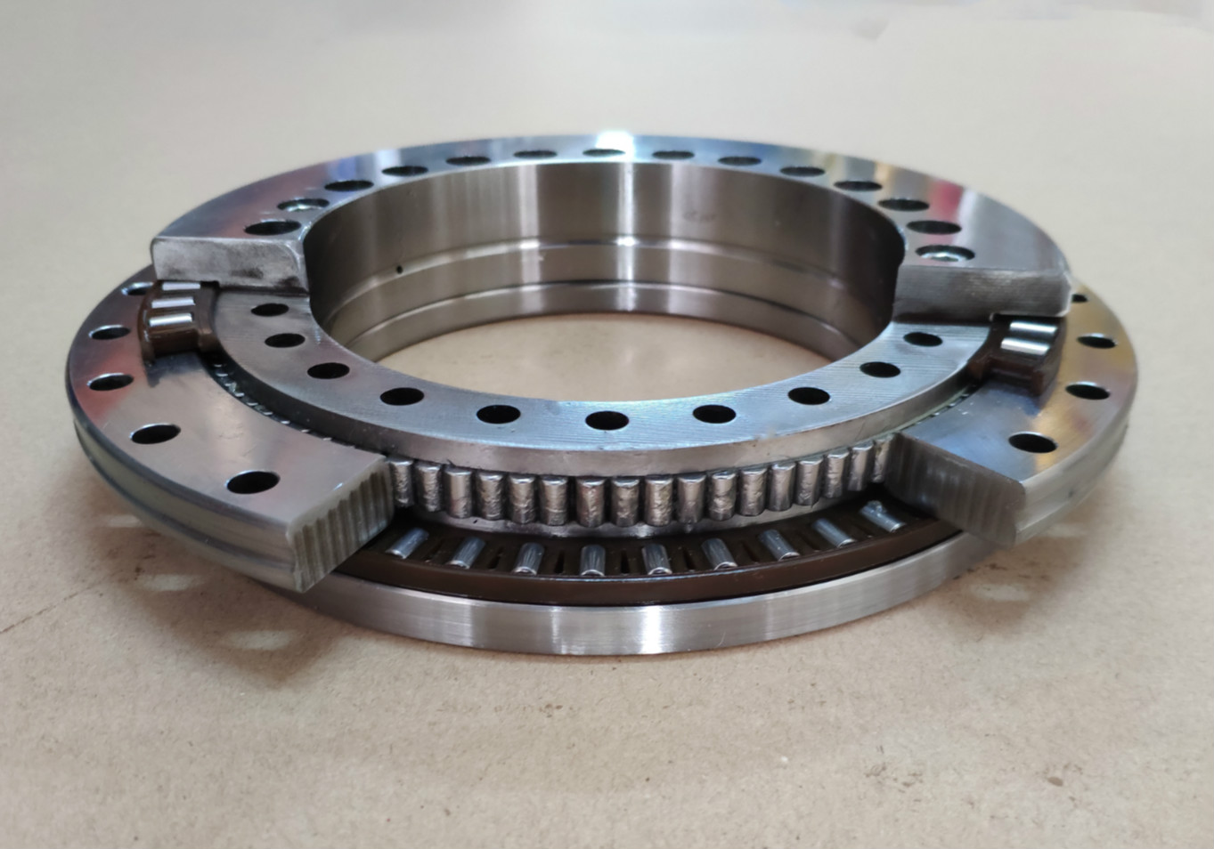 交叉滾子軸承是一種內圈分割、外圈旋轉的特殊型號軸承。因被分割的內環或外環,在裝入滾柱和間隔保持器后,與交叉滾柱軸環固定在一…